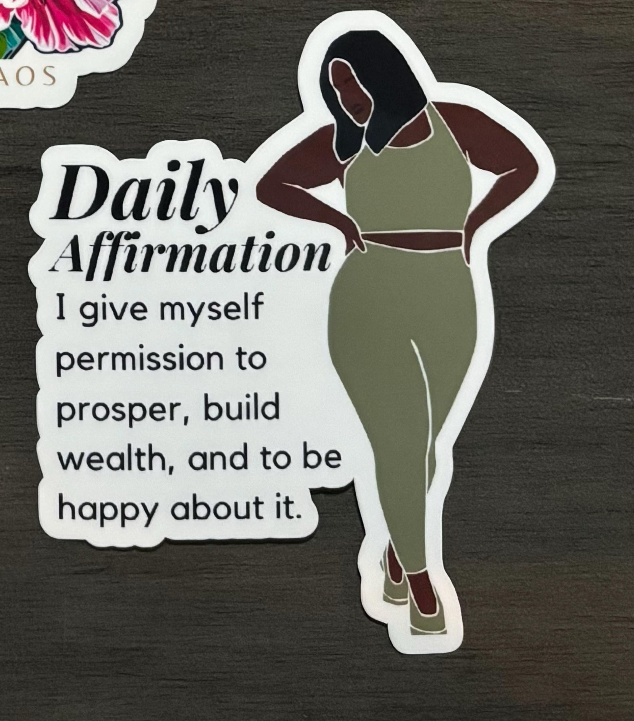 Words from the sticker: "Daily Affirmation: I give myself permission to prosper, build wealth, and to be happy about it."